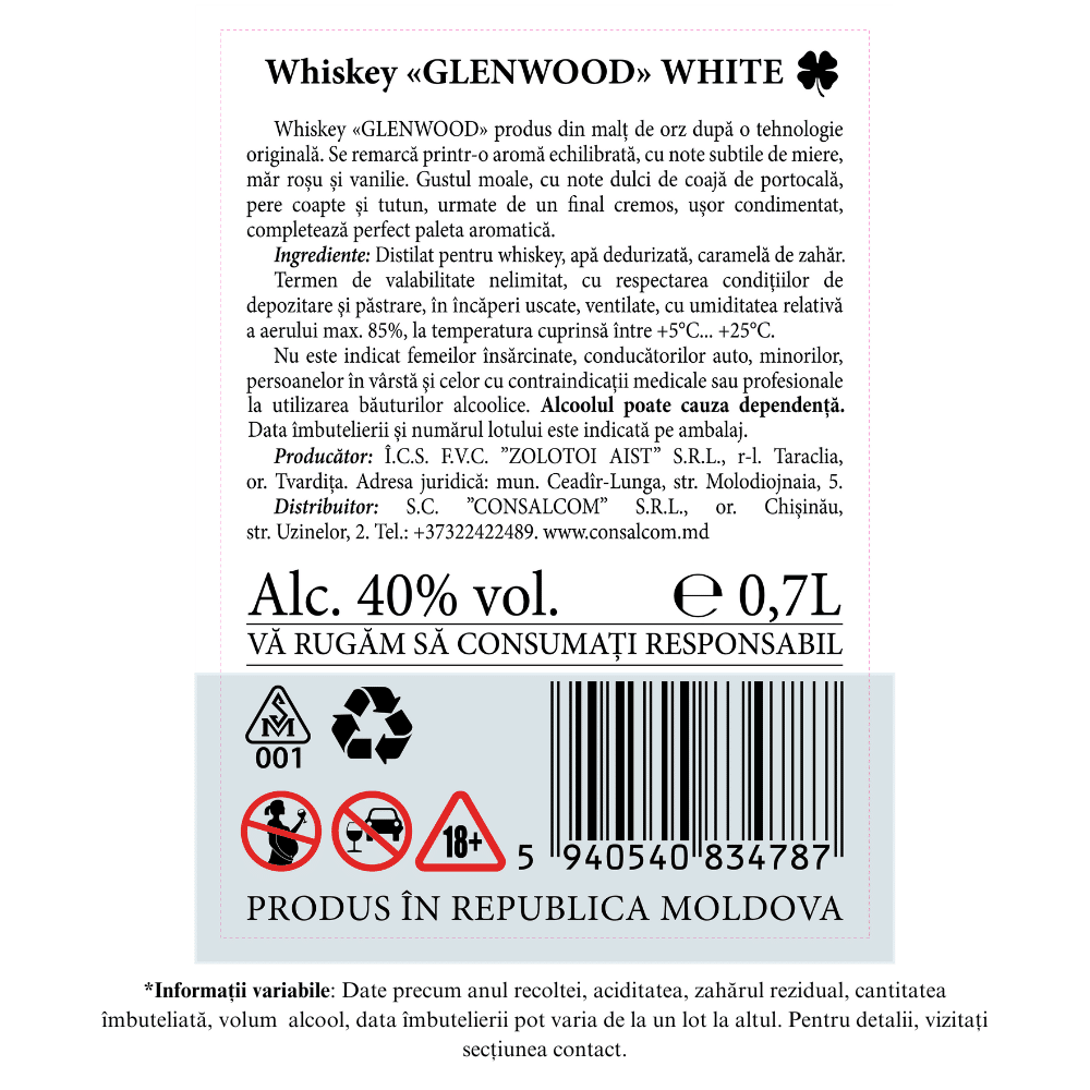 Glenwood este un brand premium de whisky moldovenesc, care armonizează tradițiile scoțiene cu măiestria locală. Creat printr-un proces meticulos de distilare și maturare în butoaie de stejar, Glenwood oferă un gust echilibrat, cu arome bogate și note subtile de lemn și condimente. Fiecare sticlă reflectă un angajament față de calitate și autenticitate, oferind o experiență remarcabilă cunoscătorilor de whisky. Descoperă whisky-ul Glenwood și savurează eleganța și rafinamentul unui spirit excepțional, creat cu pasiune în inima Moldovei.
