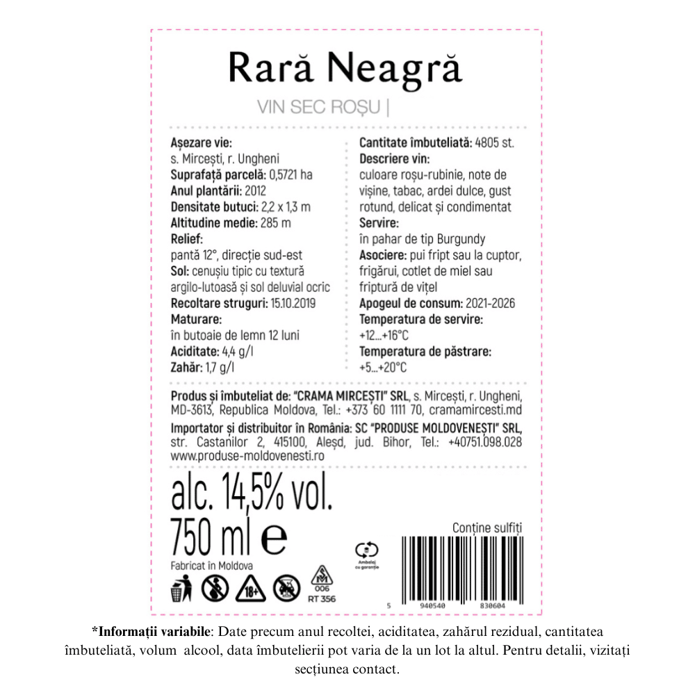 Crama Mircesti Rara Neagra – Vin Rosu Sec 0.75L