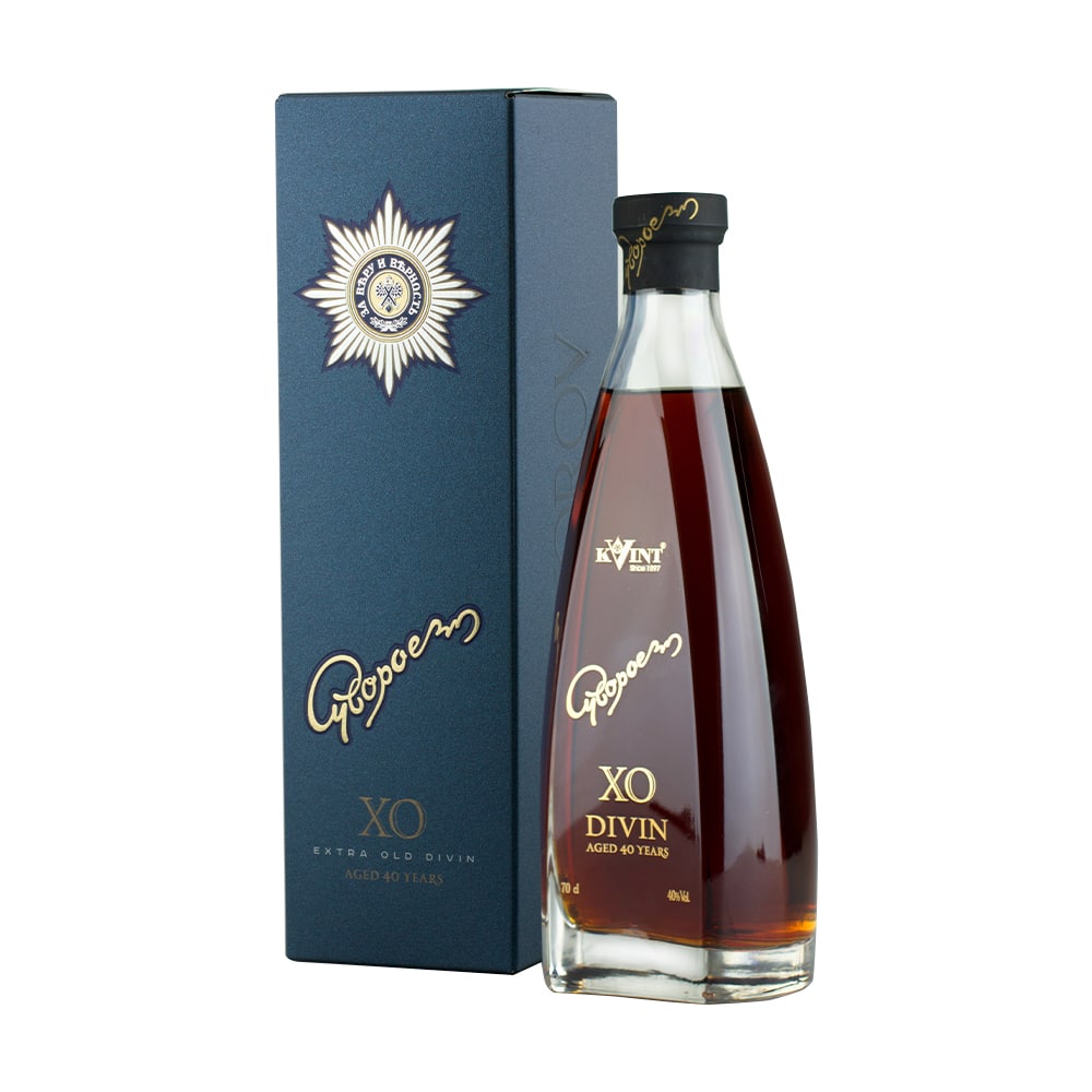Divinul are la bază distilate pure din struguri de soi clasic, maturate pe o perioadă de 40 de ani în butoaie de stejar şi contopite într-o capodoperă lichidă de neegalat, splendidă în degustare. Clima unică, bogăţia incontestabilă a pământului, relieful complex şi localizarea specială în apropierea Nistrului sunt cele patru elemente naturale care compun condiţiile perfecte pentru obţinerea esenţei pure a divinurilor Kvint.