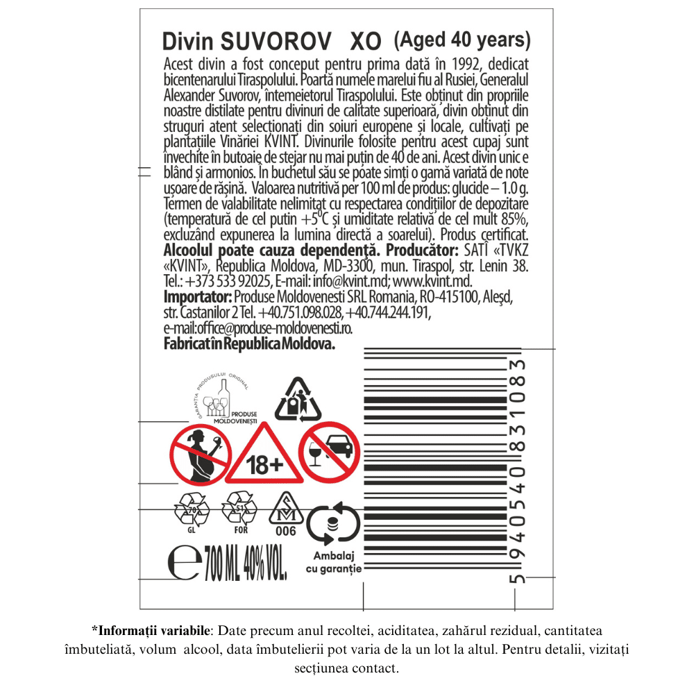 Kvint Suvorov XO 40 Ani 0.7L