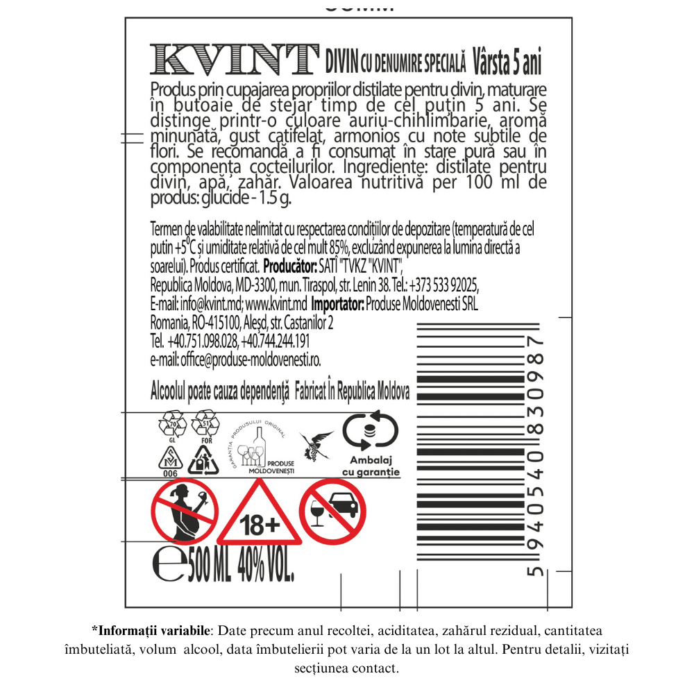 Kvint VSOP 5 ani – 40% 0,5L – poate fi servit la masa la o temperatura de 20-22 ° C in pahare speciale cu un picior scurt si un vas cu fundul lat si un varf ingust.