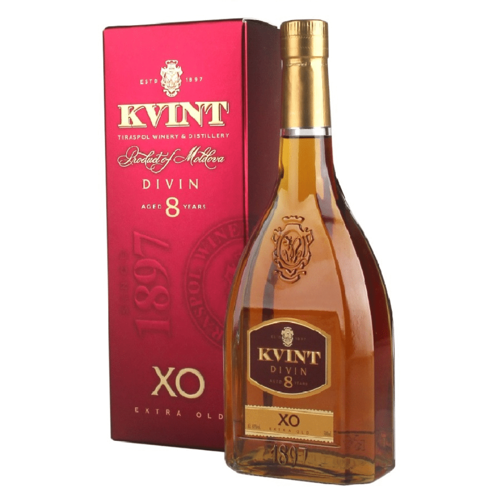Savuraţi Kvint Divin Xo 8 ani la 20-22 °С în pahar cu picior scurt şi cupă cu bază lată, îngustată în partea de sus.
