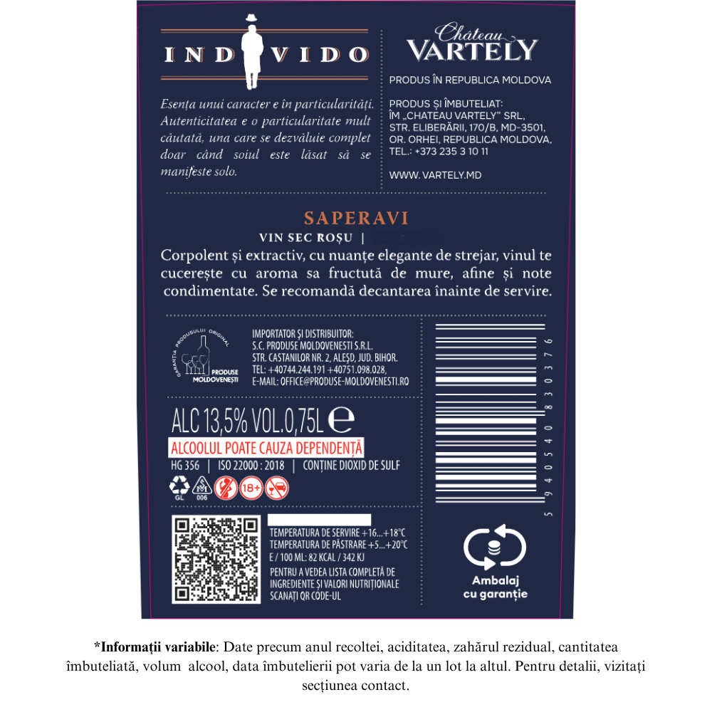 VARTELY INDIVIDO EDITIE LIMITATA SAPERAVI