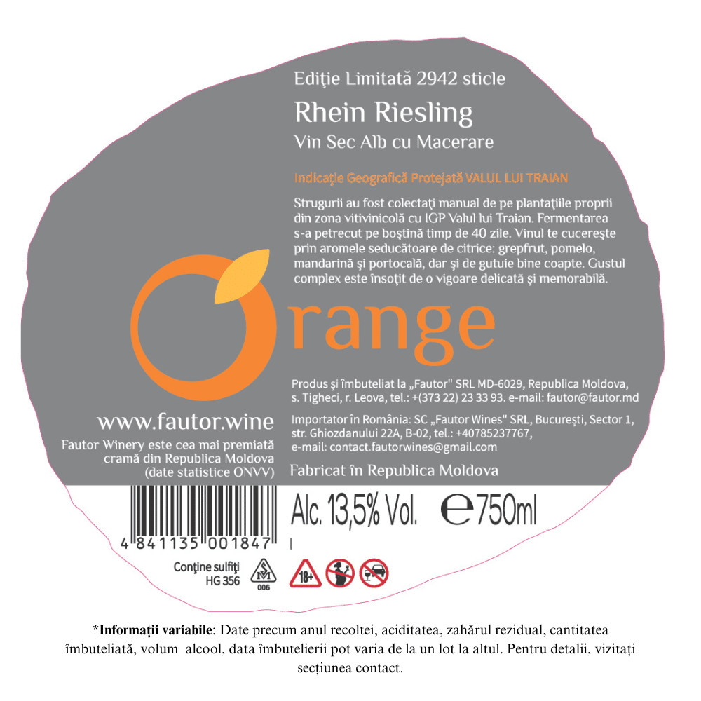 Strugurii au fost colectati manual de pe plantatiile proprii din zona vitivinicola cu IGP Valul lui Traian. Vinul te cucereste prin aromele seducatoare de citrice: grepfrut, pomelo, mandarina si portocala, dar si de gutuie bine coapte. Gustul complex este insotit de o vigoare delicata si memorabila.