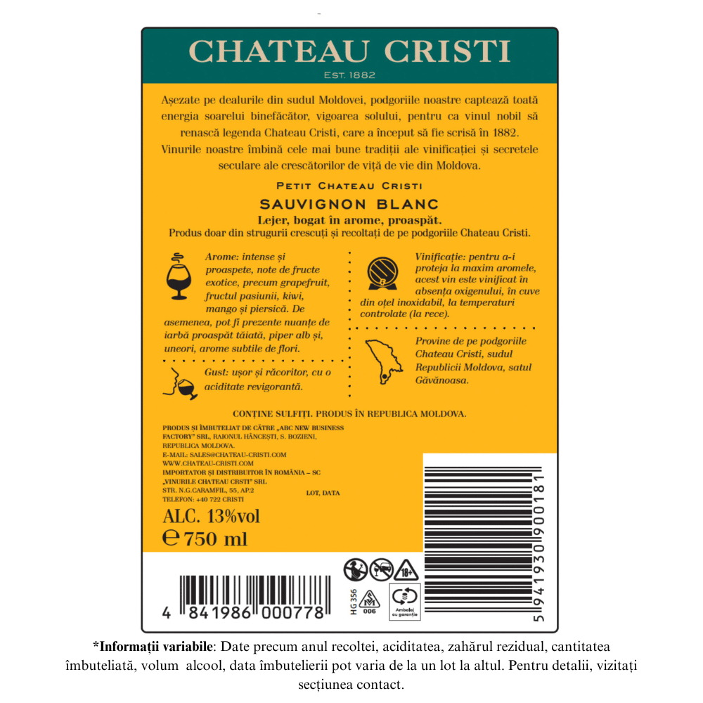 Vin Alb Sec, Petit, Sauvignon Blanc, Chateau Cristi