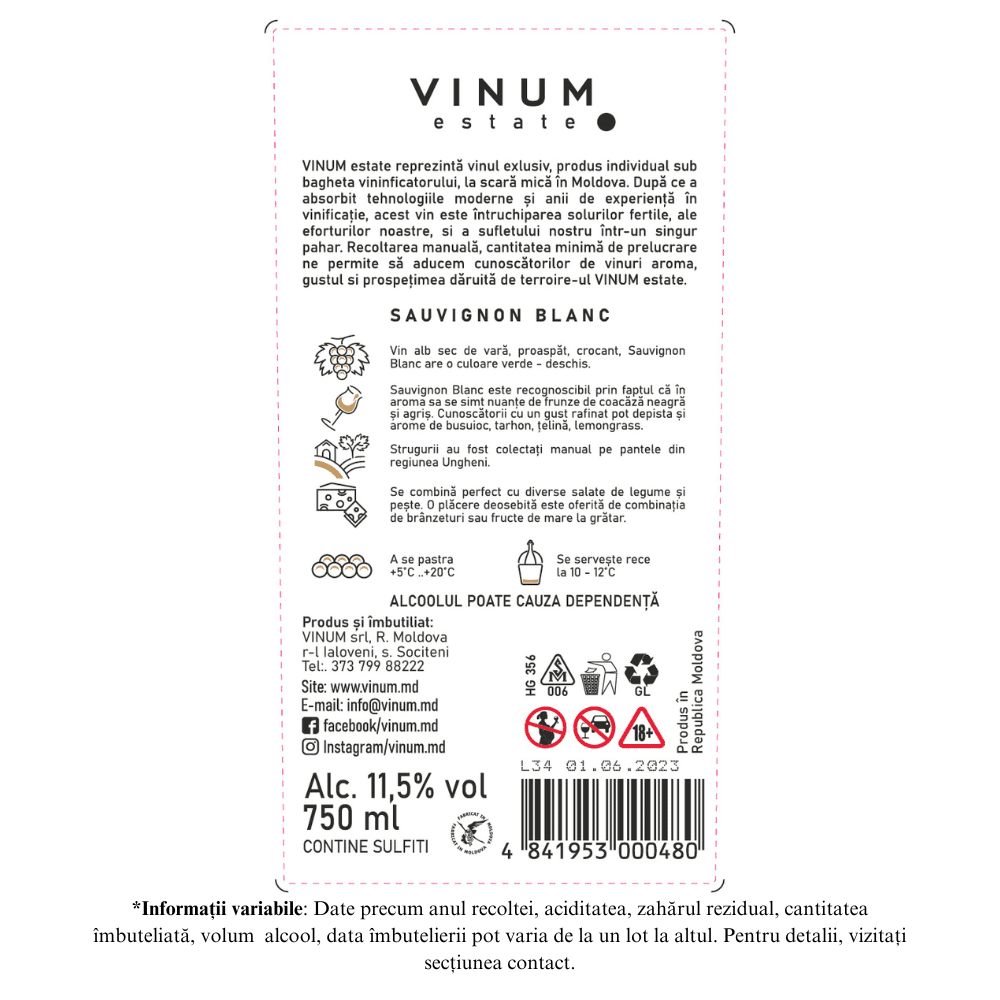 Vin Alb VINUM estate, Sauvignon Blanc, Sec 0.75L