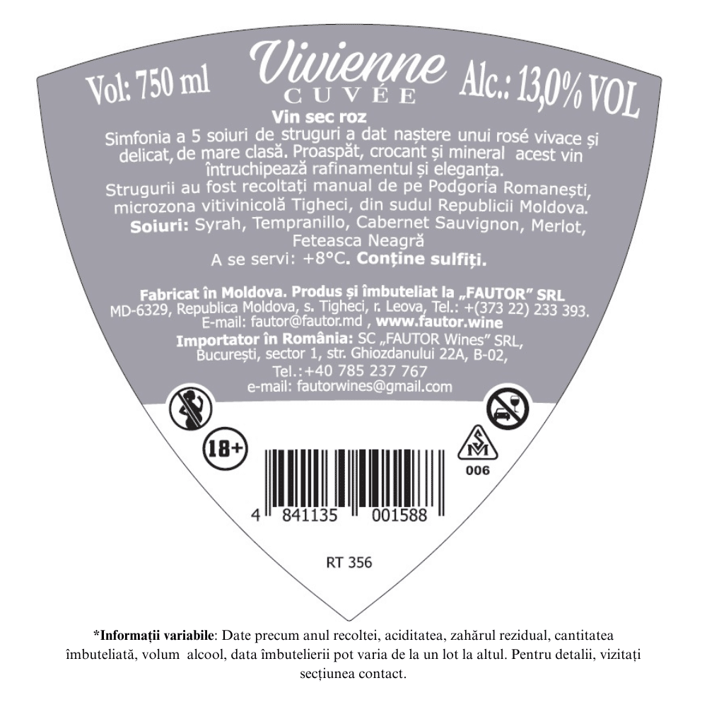 Vin rosat uscat din 5 soiuri de struguri Shiraz, Tempranillo, Cabernet Sauvignon, Merlot, Feteasca Neagra a dat naștere unui vin cu adevărat plin de viață, cu o mare aromă de mure, căpșuni, coacăze, cu un gust gust echilibrat și aciditate scăzută.