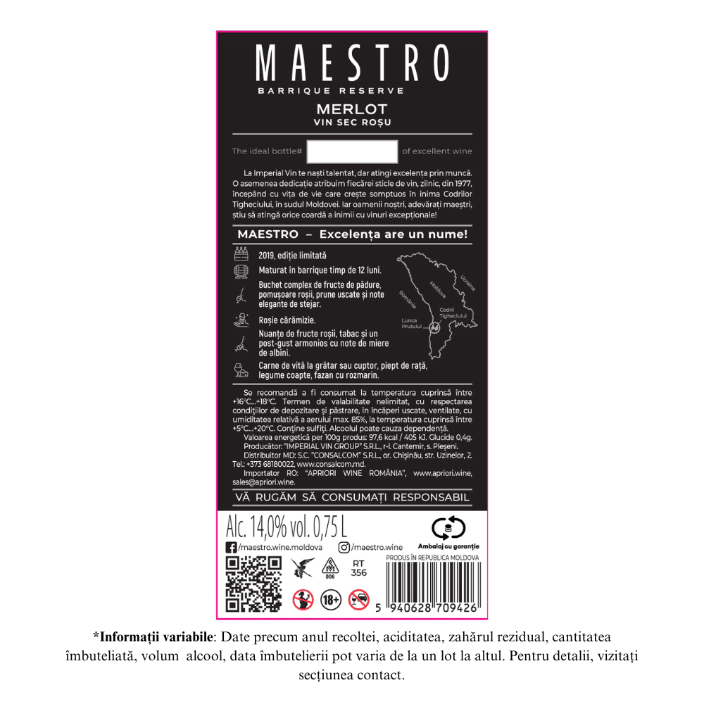 Vin rosu sec APRIORI MAESTRO Merlot 0,75L
