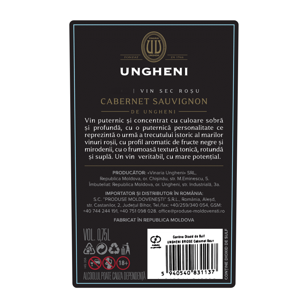 Vin UNGHENI Bridge Cabernet Sauvignon Rosu Sec 0,75L
