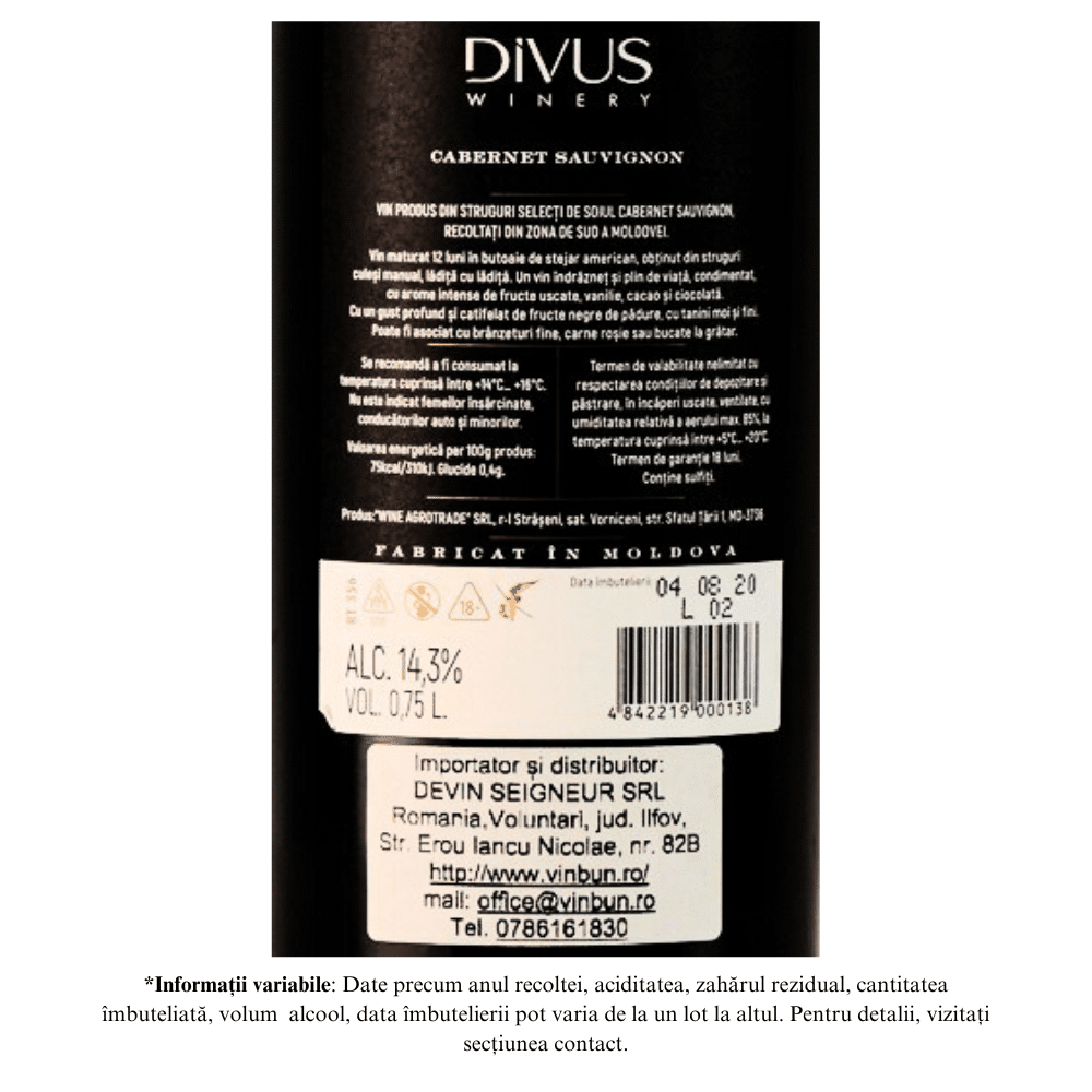 Vin Rosu Sec DIVUS Winery Cabernet Sauvignon