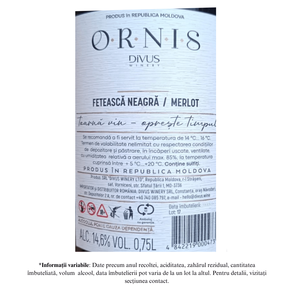 ORNIS – este cupajul creat prin combinarea de tradiții în vinificație și inovație a vinăriei DIVUS, pentru a crea acest vin excepțional din inima Codrilor.