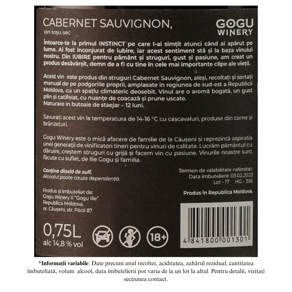 Vin Rosu Sec Instinct Cabernet Sauvignon Gogu Winery