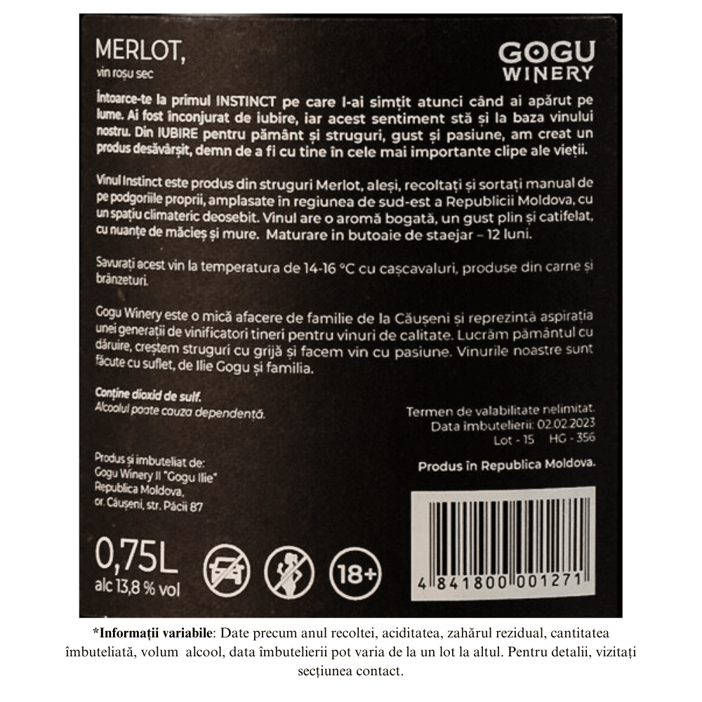 Vin Rosu Sec Instinct Merlot Gogu Winery