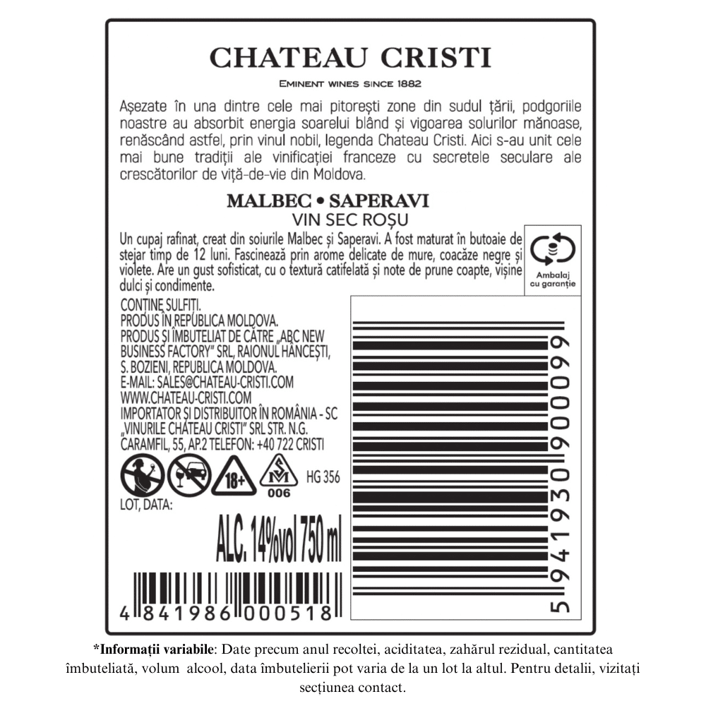 Vin Roșu Sec, Malbec & Saperavi, Chateau Cristi