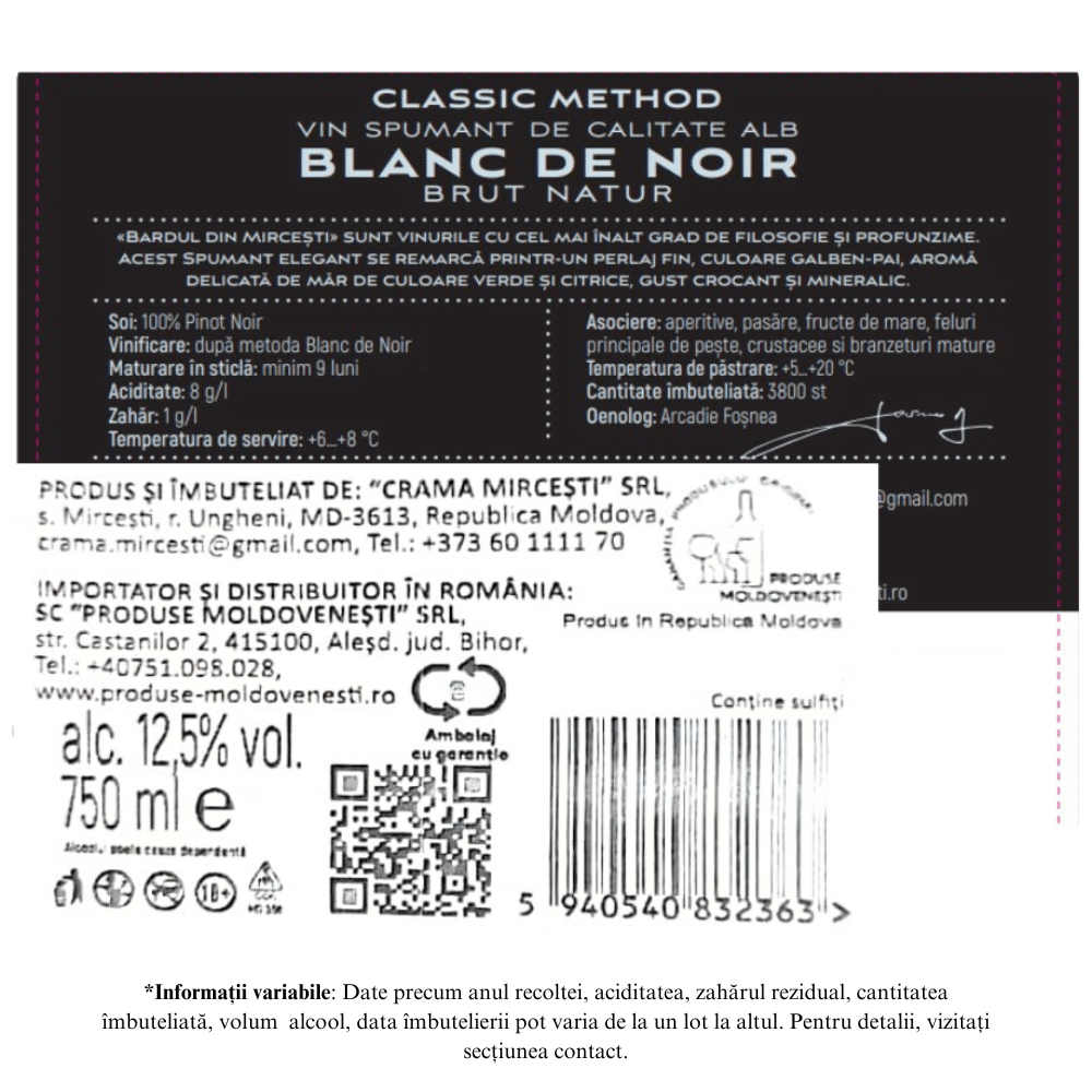 Crama Mircesti – Bardul din Mircesti Spumant Brut Alb 0,75L