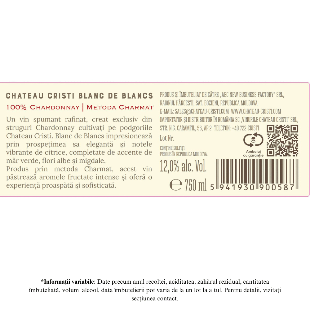Chateau Cristi Blanc de Blancs este un vin spumant elegant, obținut exclusiv din