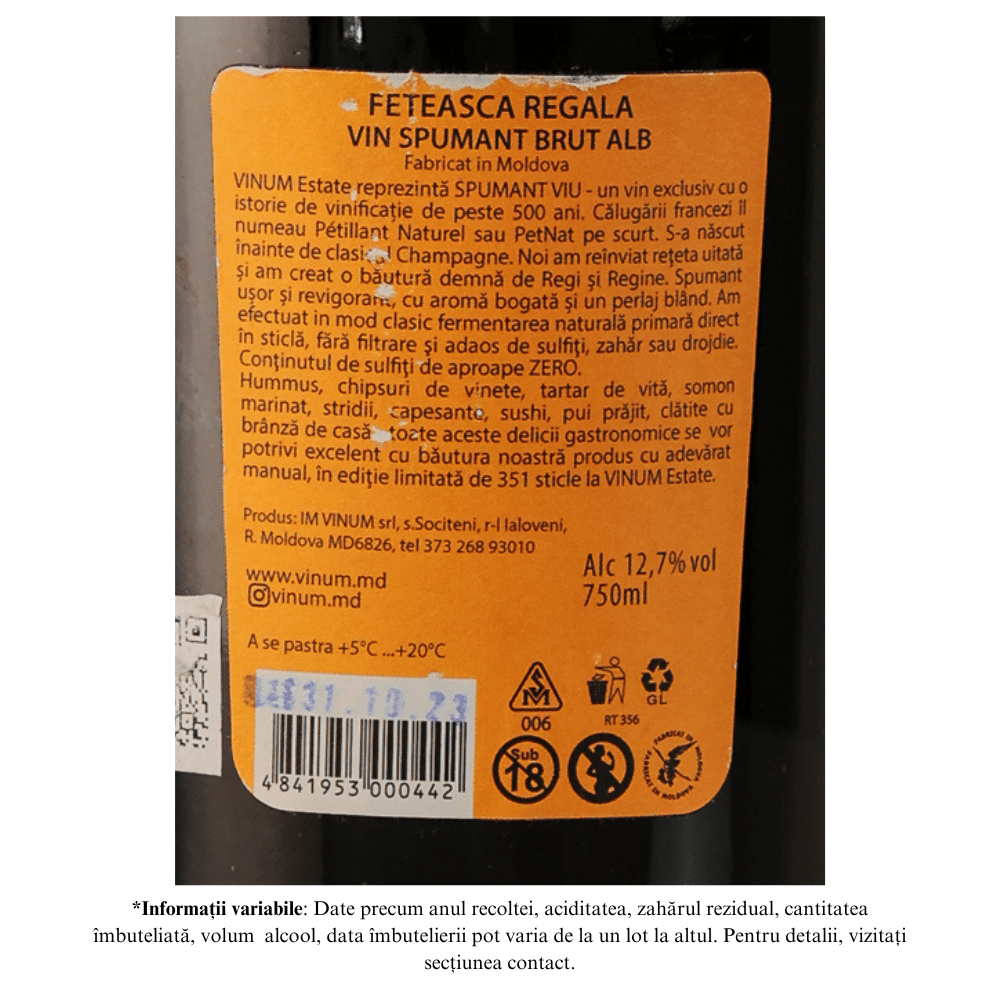 Vin Spumant Viu VINUM estate Feteasca Regală Brut 0,75L