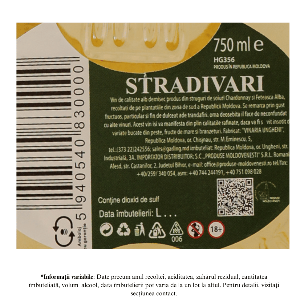 Vin UNGHENI Stradivari Alb Demisec 0,75 L